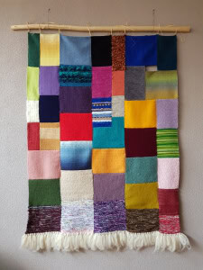 Het weefproject is af. Mensen vinden het mooi. Ik weet niet of ik het mooi vind, maar ik kijk er wel vaak naar en dan zie ik al die lapjes. Al die weken, al die kuren. Ik zie de spanning tussen de lapjes, sommigen zitten scheef, anderen staan bol of trekken hol. Het is precies zoals ik al die weken behandeling heb ervaren. In het begin probeerde ik nog de scheve, gespannen lapjes te corrigeren, maar dat lukte niet. Logisch, het wás een spannende tijd.